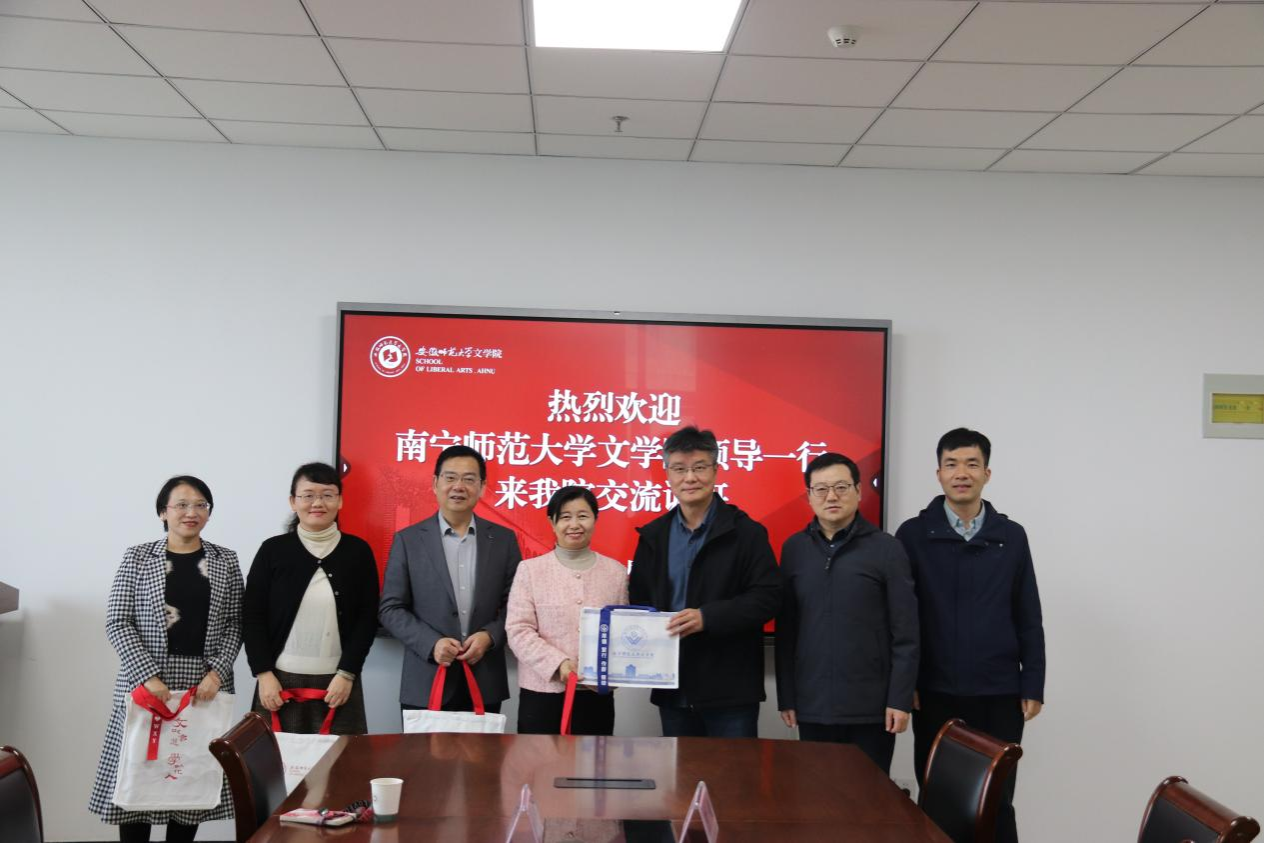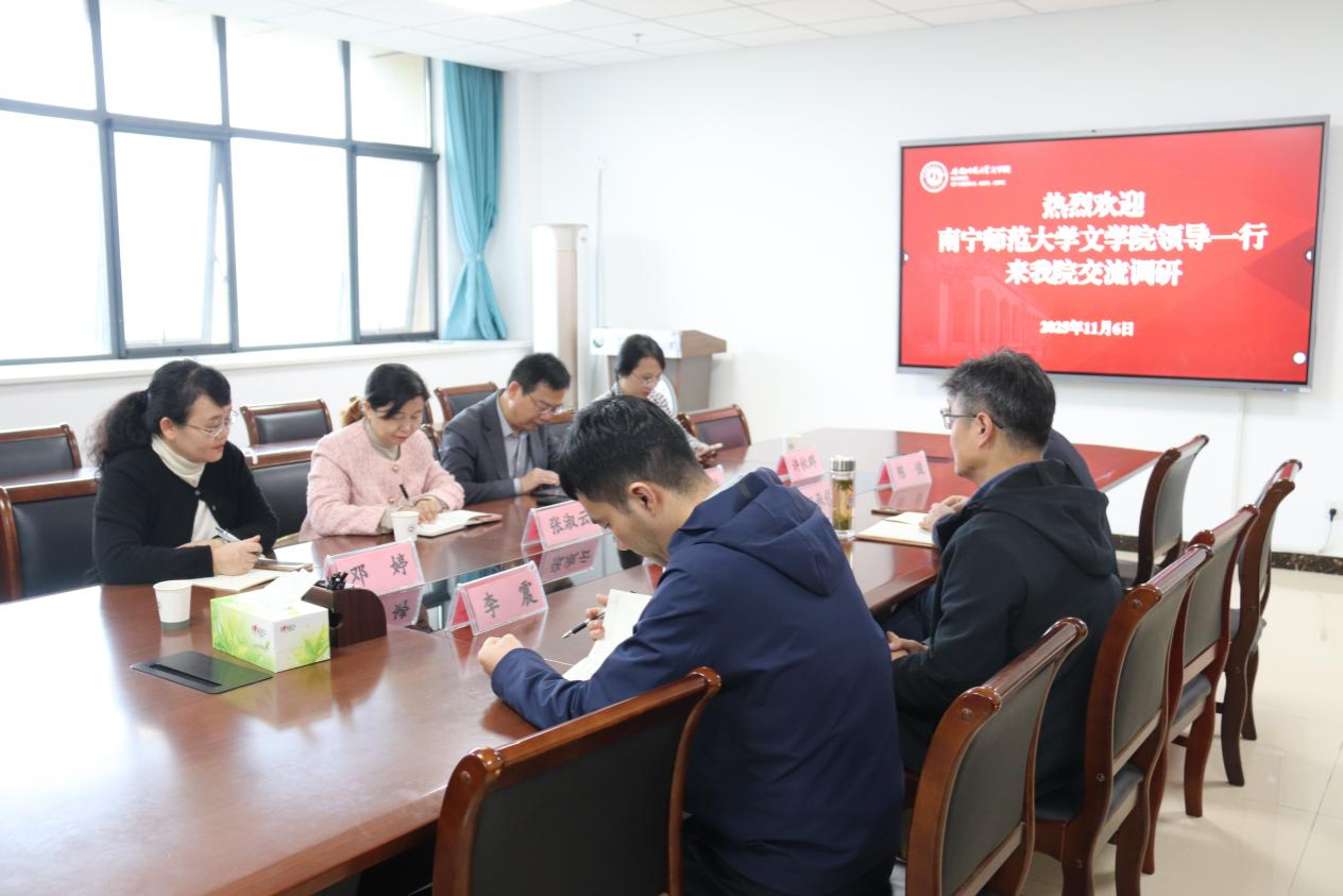为积极应对高等教育发展新趋势和专业升级改造需求,学习借鉴国内同行在秘书学专业建设与人才培养中的先进经验,11月6日上午,南宁师范大学文学院一行赴安徽师范大学文学院开展专题调研交流。此次调研聚焦秘书学专业转型发展与改革创新,旨在通过深度对话碰撞思想,为学院相关工作推进汲取宝贵经验。