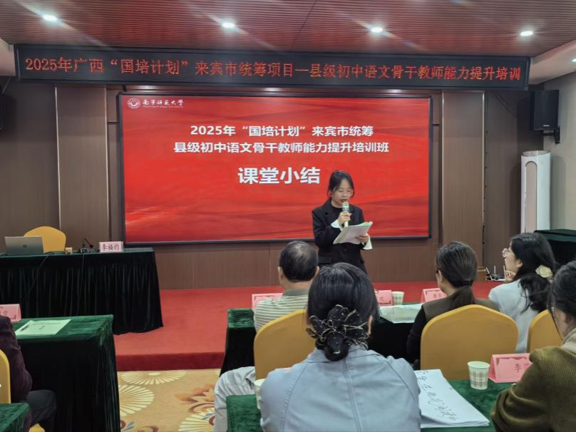此次培训紧扣初中语文教学核心需求,整合优质教育资源,为来宾市县级初中语文骨干教师搭建了学习交流与专业提升的平台。参训教师纷纷表示,将把培训所学融入日常教学,切实发挥骨干教师的示范引领作用,为当地基础教育高质量发展注入新动力。