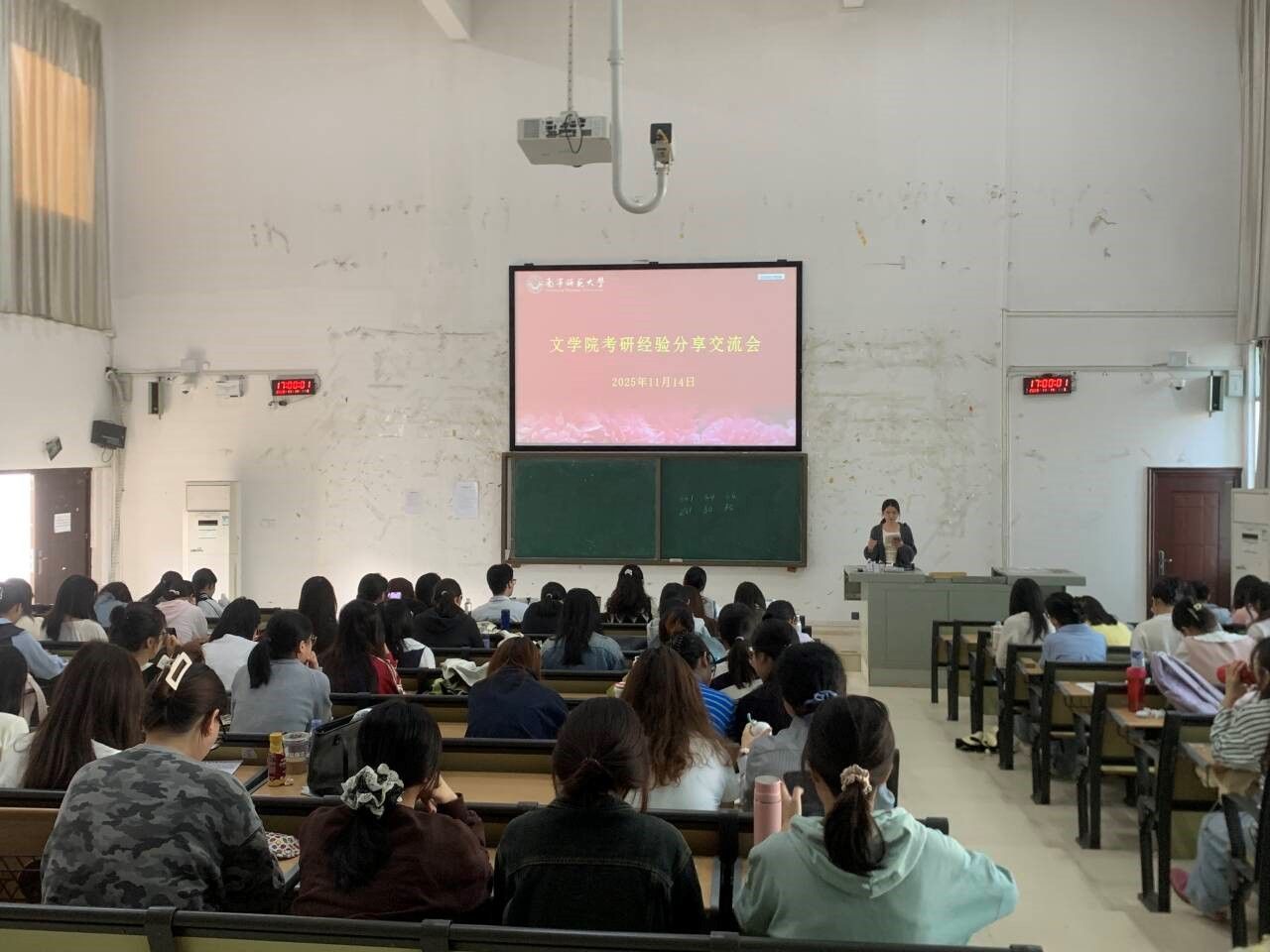 为帮助 2023 级汉语言文学专升本学生明晰考研方向、精准获取备考信息、积累实战经验,11 月 14 日下午,文学院于五合校区五综308教室举办考研经验分享会。本次分享会由文学院辅导员周泉锶主持,邀请学院2025届考研上岸的优秀学长学姐担任分享嘉宾,2023 级汉语言文学专升本全体学生参会学习。