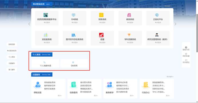 已收藏的服务会出现在首页的个人常用列表中,可以通过点击该服务进行快速跳转